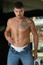 Horny jock MrDeepVoice pleasures nine hung hunks.