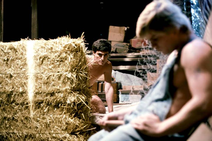 'Three in a Barn' - The old barn doesn't look luxurious but it's shelter for the night. Larry Atkins, a traveling salesman, is grateful for that much at least. At the sound of approaching footsteps, he quickly dcks out of sight. On the other side of the haybale, he sees hunky blond Rock feeding the animals. finished with his chores, Rock starts pawing at the front of his overalls, opening his fly and pulling out a club-like cock that he's soon stroking with horny teenaged skill. Just then the barn door opens and a suprised Larry looks up to see tall muscular Barry...who's the spitting image of Rock ... only older. It suddenly hits him that the two studs must be father and son! And what a team they are! The father whips out a prong that's even bigger than the guy's and proceeds to give both Rock and Larry a few pointers on how to train a stud to service a hot cock.