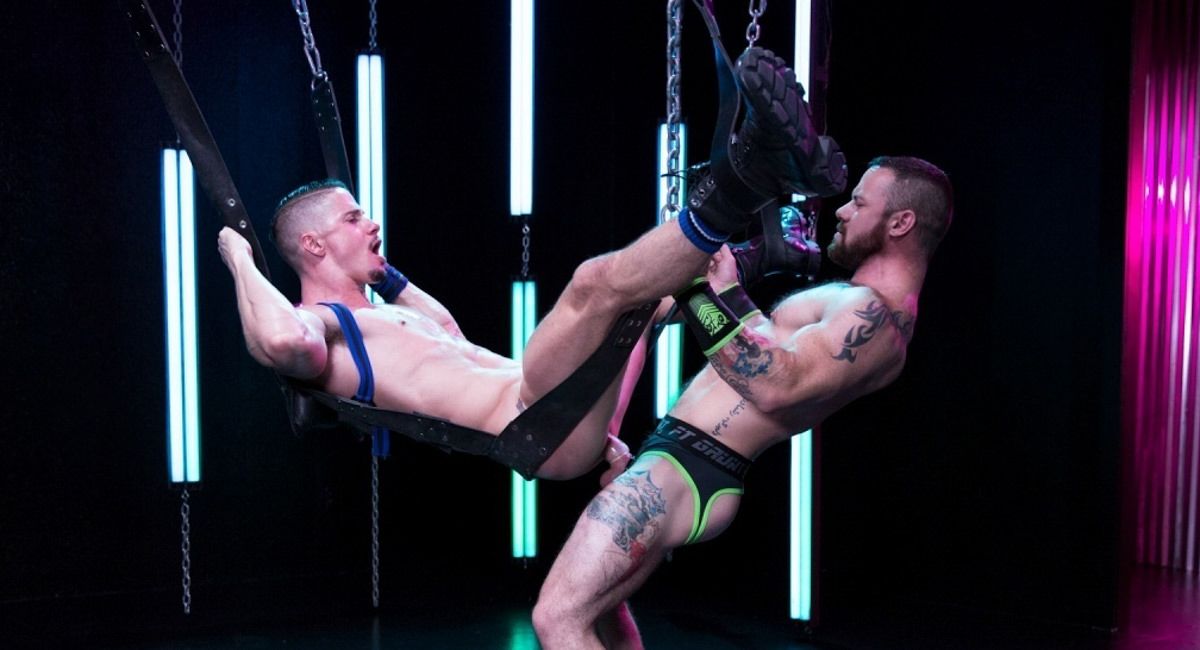 Skyy Knox and Sergeant Miles come together in a smoky, dim room where all that matters is the feel of their flesh pressed against each other. The studs go slow, taking time to enjoy every inch of sweaty skin the other has to offer. After licking and exploring every bit of hard body that Sergeant has to offer, Skyy gets on his knees in front of the extra hung stud. Skyy is so excited to suck dick that his own uncut cock is leaking pre-cum as he wraps his lips around Sergeant's engorged pole. It's a tight fit, but Skyy manages to get the stud's whole cock down his throat as ropes of spit run out of his mouth and drip down Sergeant's massive sack. Sergeant is ready to show the young stud what it feels like to have his ass stretched out. Sergeant mounts up and pumps the muscle hunk from behind. There's no reprieve for Skyy's hot hole as Sergeant continues the rough reaming with complete and utter control over Skyy. With Sergeant drilling away at a steady pace, Skyy soaks his own stomach with an eruption from his cock. Sergeant is happy to add to the mix and pulls out to unload all over Skyy for a grand finale that leaves the sweaty stud dripping wet and full of cum.
